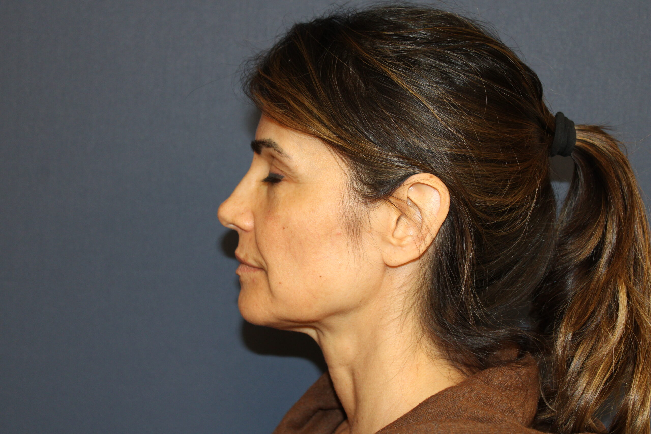 The patient presented with concerns of cheek, jowl, and neck laxity. The patient underwent lower face and neck lift with platysmaplasty with liposuction to the neck and jowls.